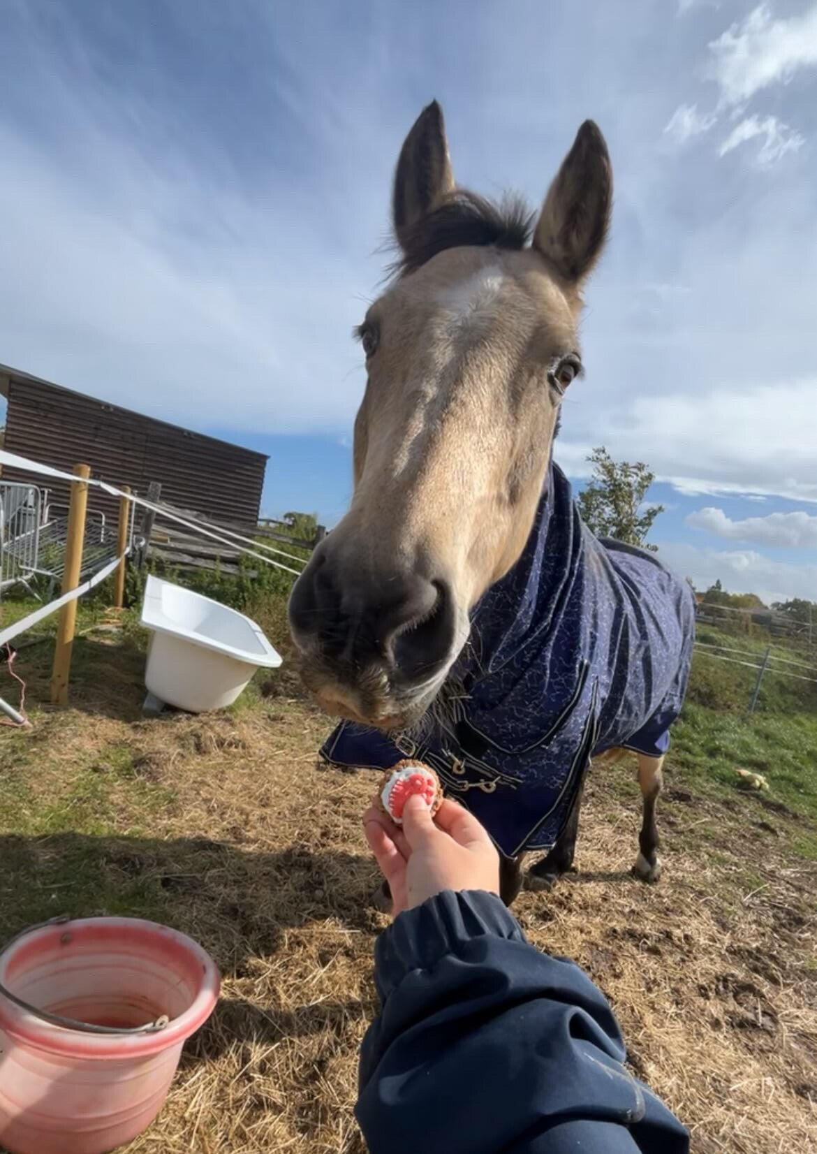 hi i’m jess a 20 year old equestrian from the north east, i have a 12.2 13 year old cob called dolly i bought as a project in 2023, we competed showjumping and tried a bit of everything! we now live life in the slower lane enjoying happy hacking and an occasional trot 🤣 dolly will do absolutely anything for a bonnie cob cookie and her ultimate favourite are the dinosaur cookies 👀
